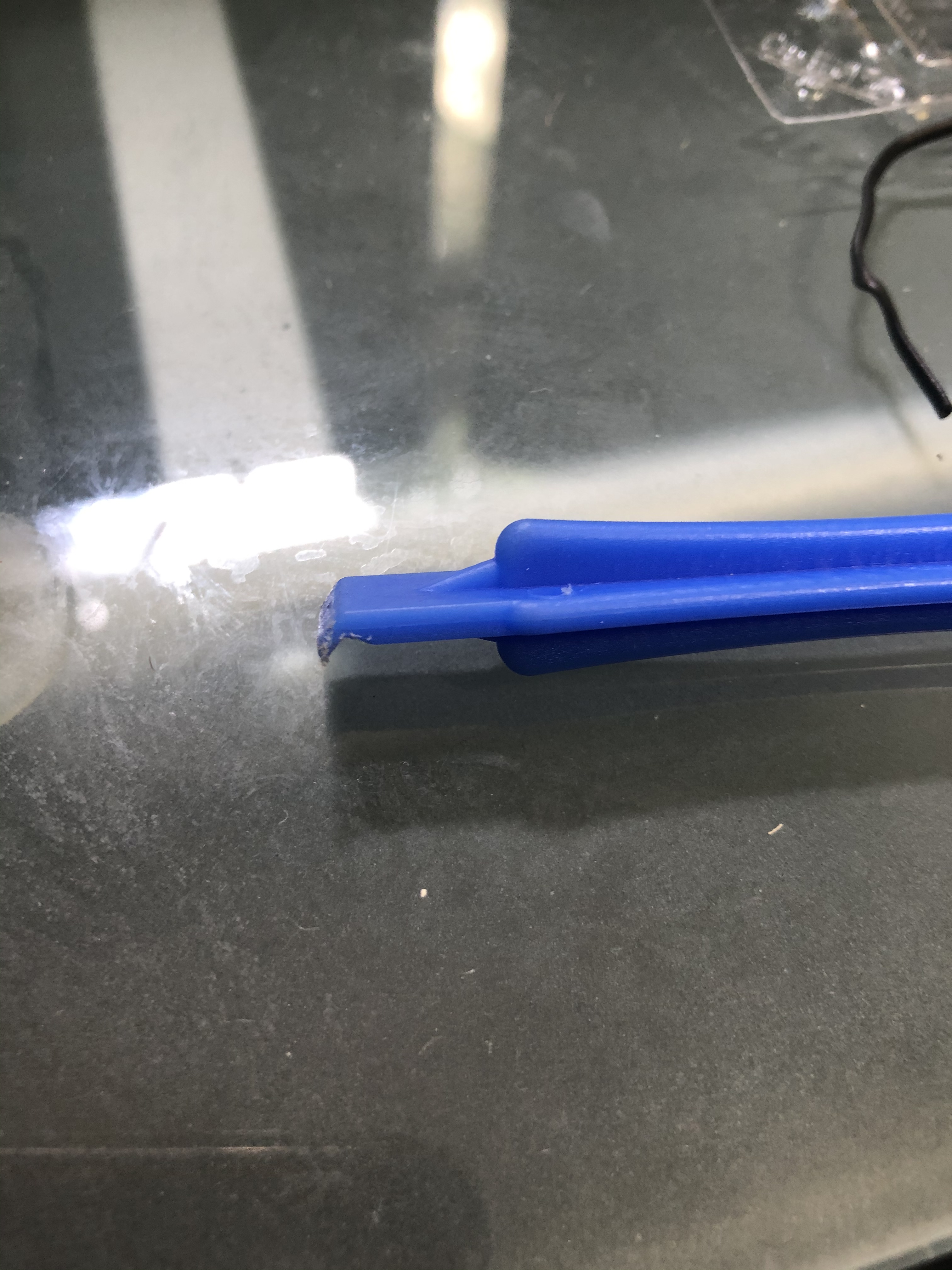 Once you get it off, the most difficult part is getting the mirror itself apart. There are no screws holding it together, just plastic snaps all around the edges. You will need a plastic opening tool or a small plastic prybar (I used one that came in an iPhone battery replacement kit, you can get a similar kit